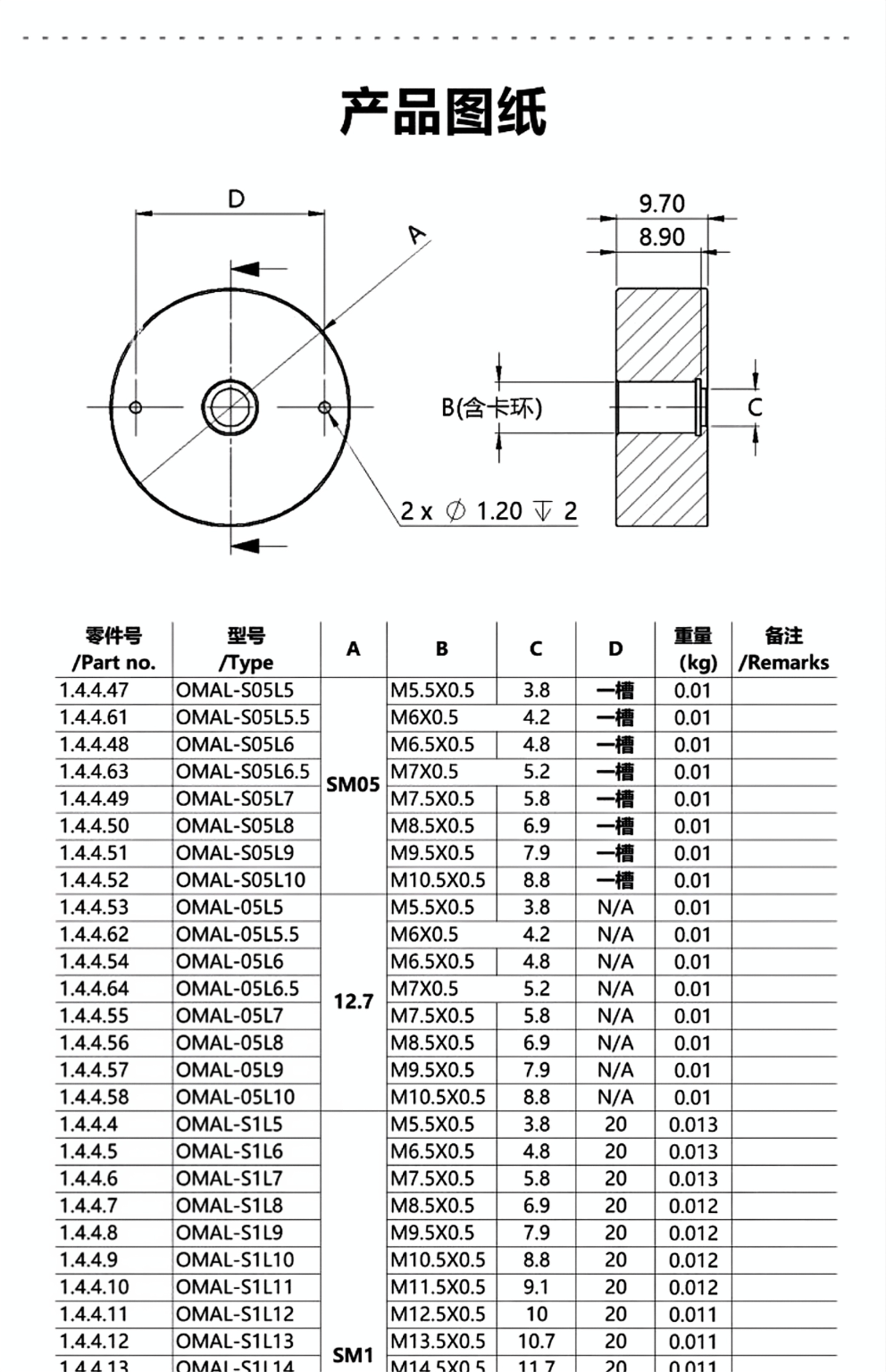 材料为铝合金表面黑色阳极氧化处理SM1外螺纹和1英寸外圆可安装5mm-20mm以及0.5英寸光学元件SM05外螺纹和0.5英寸外圆可安装5-10mm的光学元件SM1外螺纹光学元件转接件带有扳手插孔,SM05外螺纹的光学元件转接件均带有一字扳手槽附带一个卡环支持定制