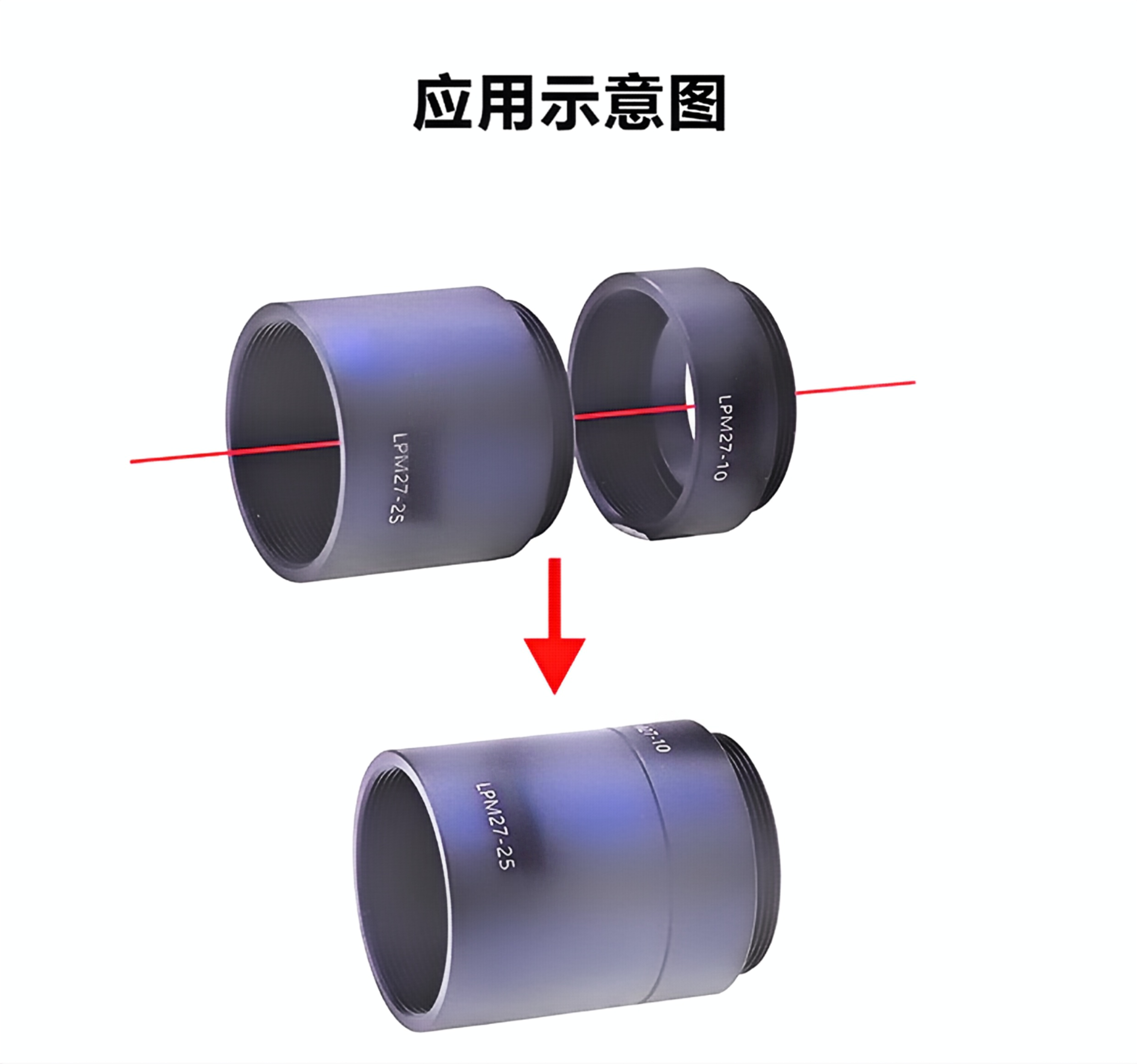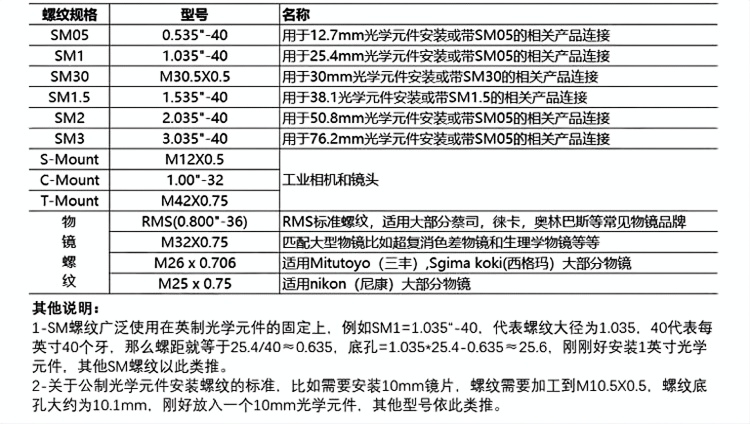 C-Mount延长管设计用于C接口组件, 可轻松实现光学系统长度的粗调,具 有可层叠式设计和C-Mount螺纹,直 接兼容C-Mount的任何组件。光学元 件可用C-Mount卡环固定在延长管内, 该延长管不附带卡环;因内径比较小, 所以无法安装1英寸或25mm光学元件