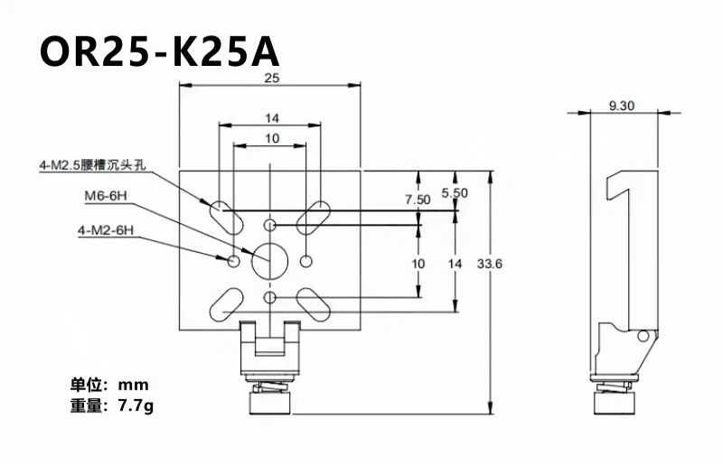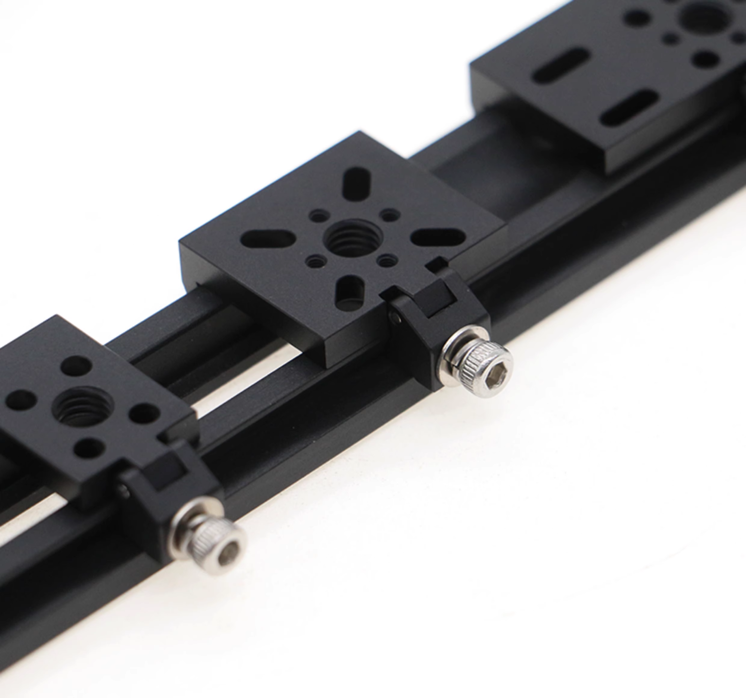 OR25-K系列采用燕尾结构,与滑轨配合使用。一旦附接后,这些导轨滑块可以实现在沿着导轨长度的任何位置处对光机械件进行运动,调整方便,重复. 该滑块可卡入沿导轨长度的任何地方,不需要从导轨末端安装。滑块沿导轨滑动时进行成无摇晃的平移,移动位置确认后,拧紧手拧螺钉上的紧固螺丝 即可锁定位置。 性好。 导轨滑块,用于将组件安装到燕尾导轨上。兼容我们的 OR-25 系列光学导轨。安装面具备多个螺纹孔,用于安装组件,多宽度规格可选