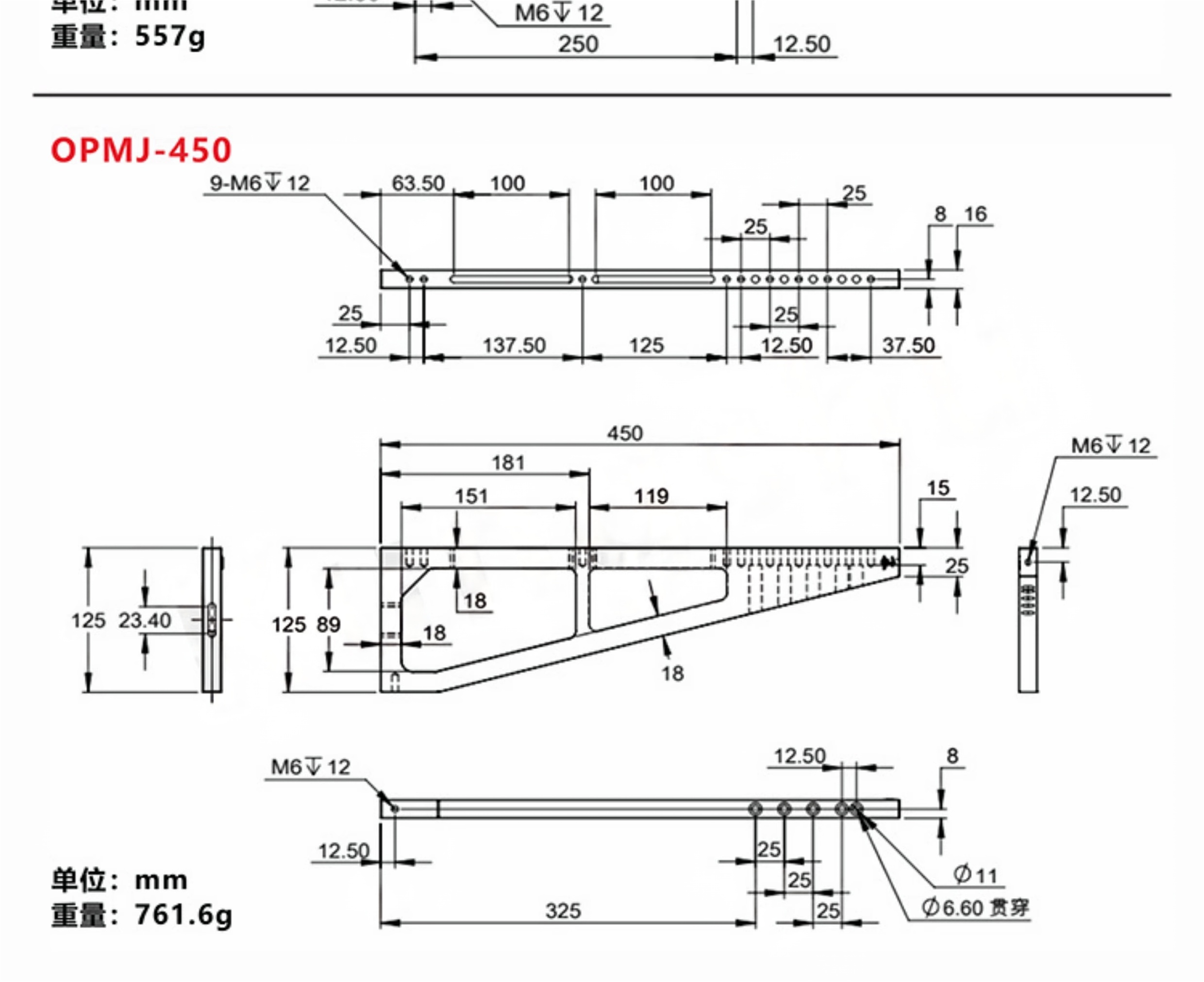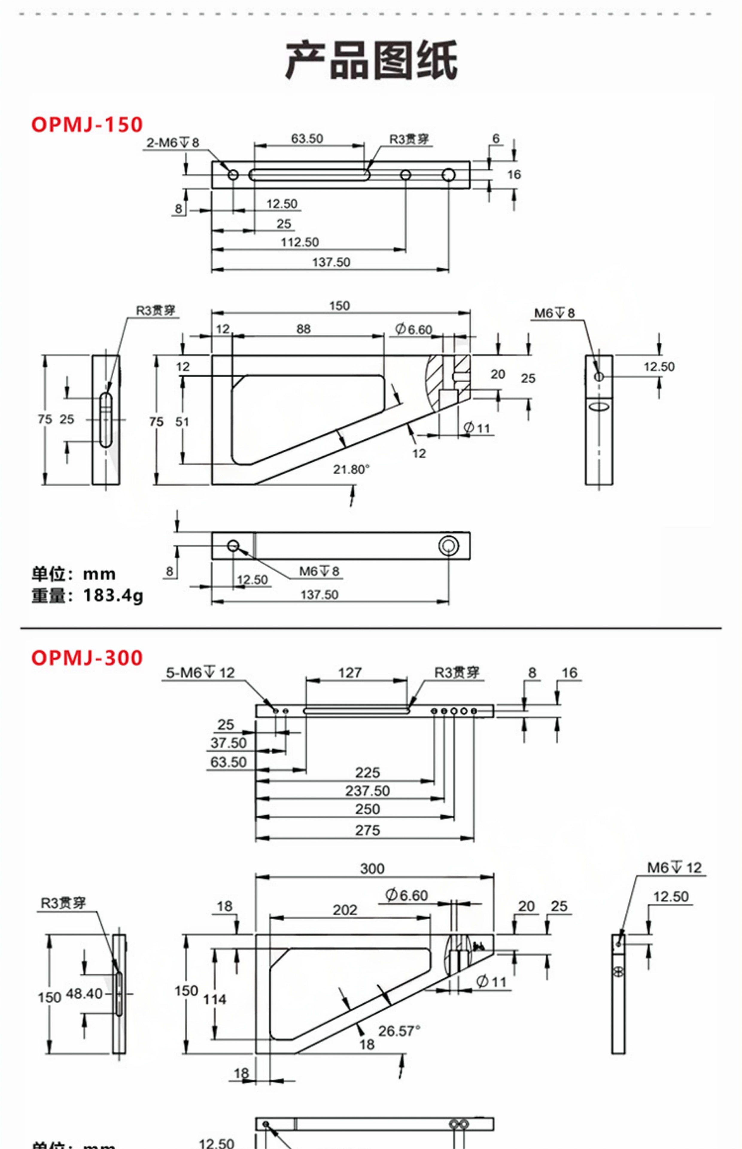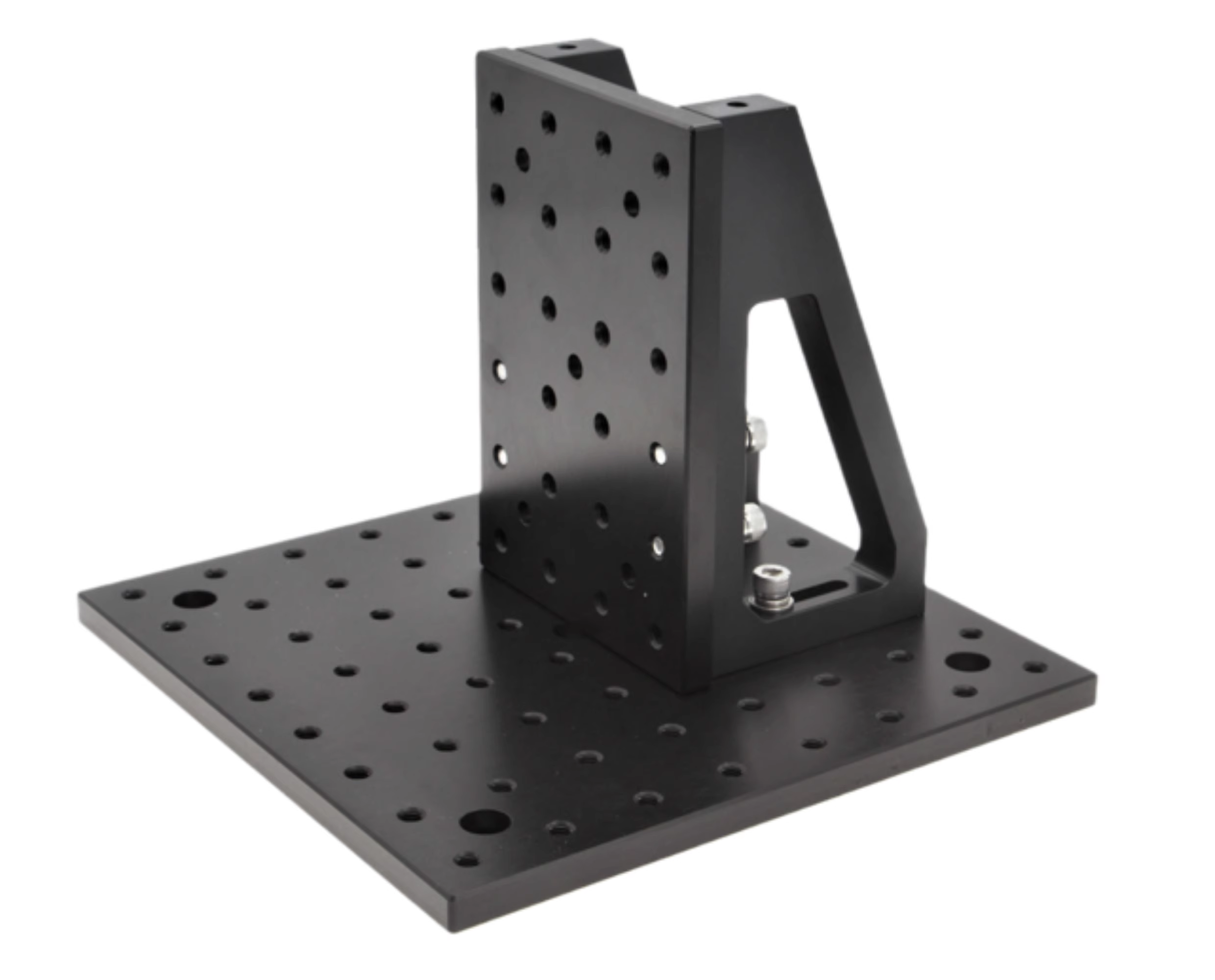 1-整体铝合金材料表面黑色阳极氧化; 2-用于将光学平板竖直安装 3-带有兼容25x25mm间距的M6螺纹安装孔; 4-便于将铝合金平台安装到大型光学隔振平台; 5-包装方式有单件和两件装,两件装优惠5%。