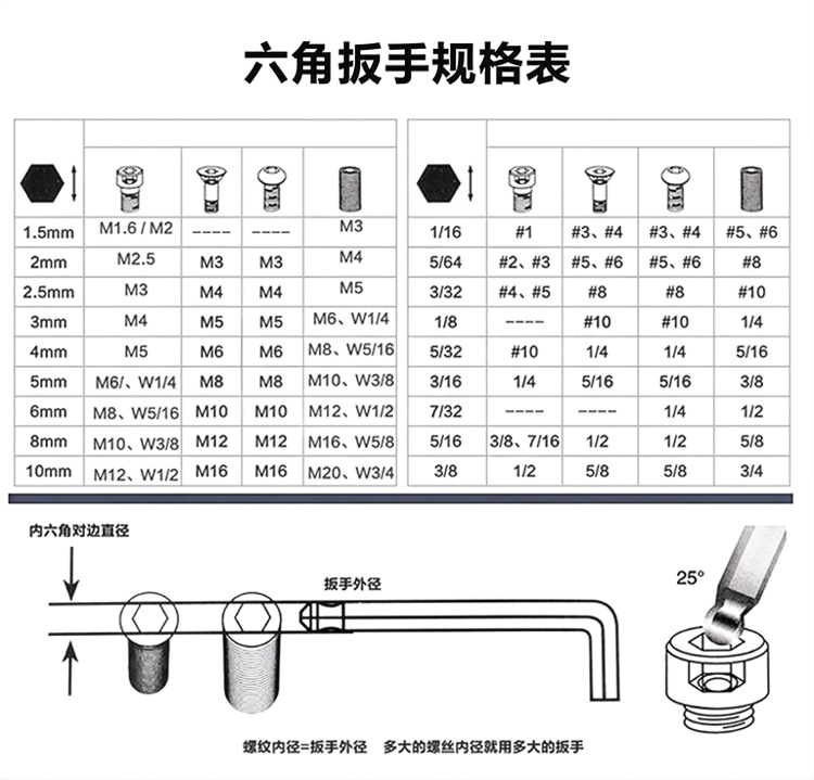 1-进口六角扳手,材料为铬钒钢制造制造; 2-有公制和英制可选,使用绝大部分光学机械零件应用场合; 3-表面黑色防锈处理,经久耐用;4-球头设计可以在倾斜25°内正常使用。