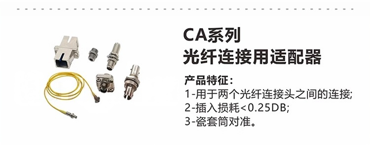 1-用于两个光纤连接头之间的连接; 2-插入损耗<0.25DB; 3-瓷套筒对准。