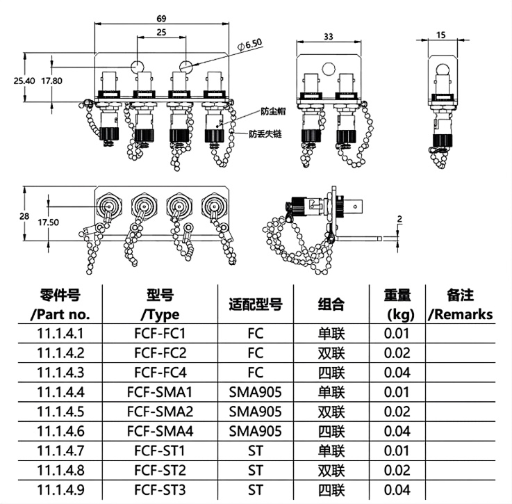 1-光纤连接器托架,用于固定和安装光纤适配器; 2-有FC\SMA\ST三种型号可选; 3-有单联\双联\四联可选; 4-托架包含光纤适配器和防尘帽 5-适用M6螺丝,可以方便的固定到光学平台上; 6-可以单独采购托架,咨询客服、