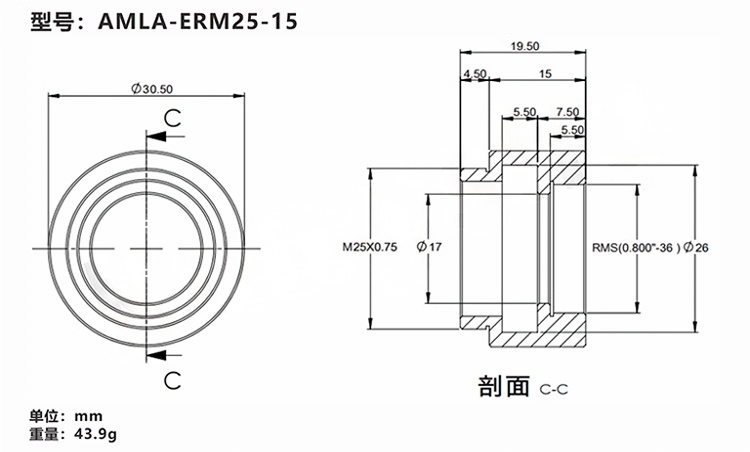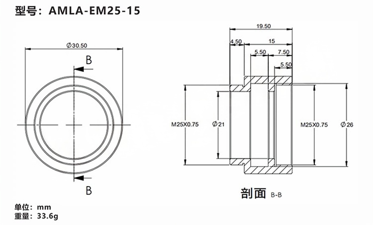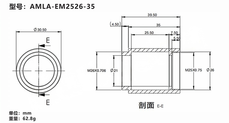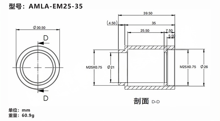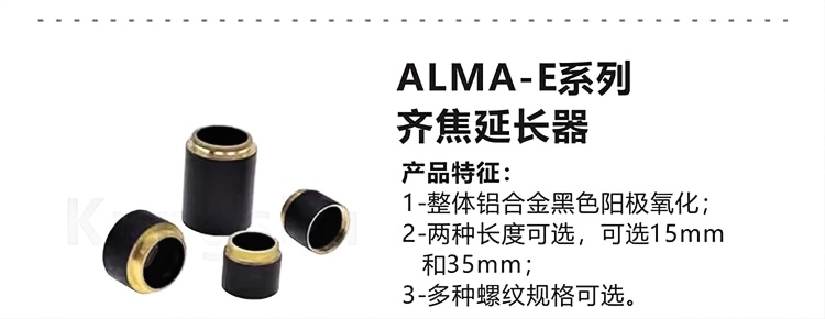 1-整体铝合金黑色阳极氧化; 2-两种长度可选,可选15mm和35mm; 3-多种螺纹规格可选。