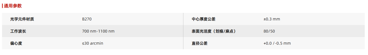 用B270玻璃制作多种非球面聚光透镜,B270玻璃是Schott开发的一种高品质玻璃,具有很高的表面平整度和良好的光学性能,在可见光波段具有良好的透过率。非球面聚光透镜预安装标准透镜套筒。套筒表面均刻有产品型号、类型、直径、焦距和数值孔径,方便用户快速识别透镜参数。