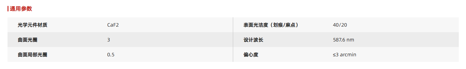 平凸透镜通常用于缩小光束、减小焦距或放大图像等相关应用。使用CaF2制作多种透镜,CaF2在紫外和红外光谱范围具有很高的透过率,并且具有极高的损伤阈值,使其在准分子激光行业得到广泛的应用。所有圆形透镜均可安装于标准透镜套筒、固定式透镜镜架以及各类同轴安装板上。客户可针对不同应用场景选择最佳安装方式。
