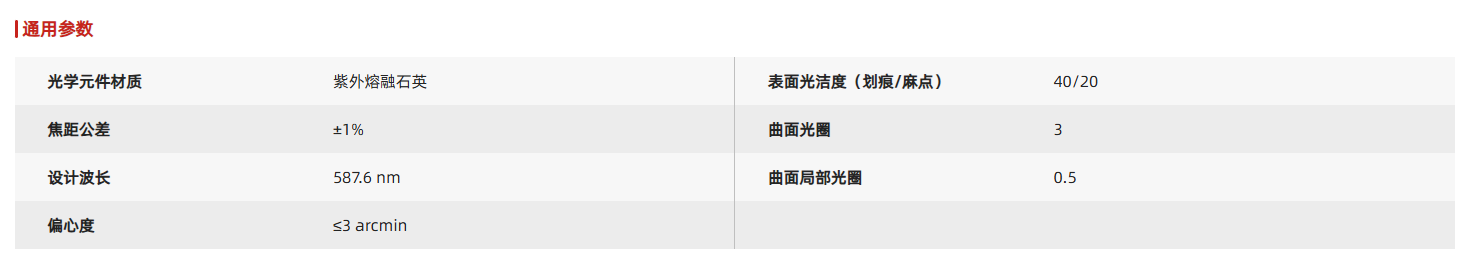 双凸透镜具有负焦距常用于成像或光束准直等应用。紫外级熔融石英在深紫外具有很高的透过率,且几乎不产生激光诱导荧光,适合应用于从紫外到近红外波段。所有圆形透镜都预安装标准透镜套筒或者透镜安装转接件。这些机械件表面均刻有产品型号、类型、直径和焦距,方便用户快速识别透镜参数。