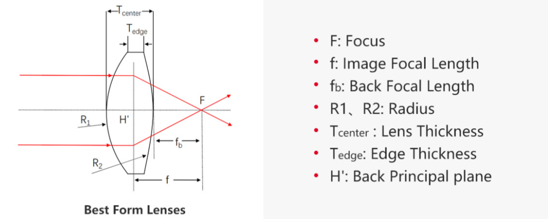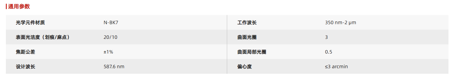 最佳外形透镜是高功率应用中无穷共轭处替代胶合透镜的理想选择。由于最佳外形透镜可以将光斑优化到最小,因此理论上能达到衍射极限性能,为了达到最佳的聚焦效果,曲率半径更小的表面应朝向准直光源。所有圆形透镜都预安装标准透镜套筒或者透镜安装转接件。这些机械件表面均刻有产品型号、类型、直径和焦距,方便用户快速识别透镜参数。