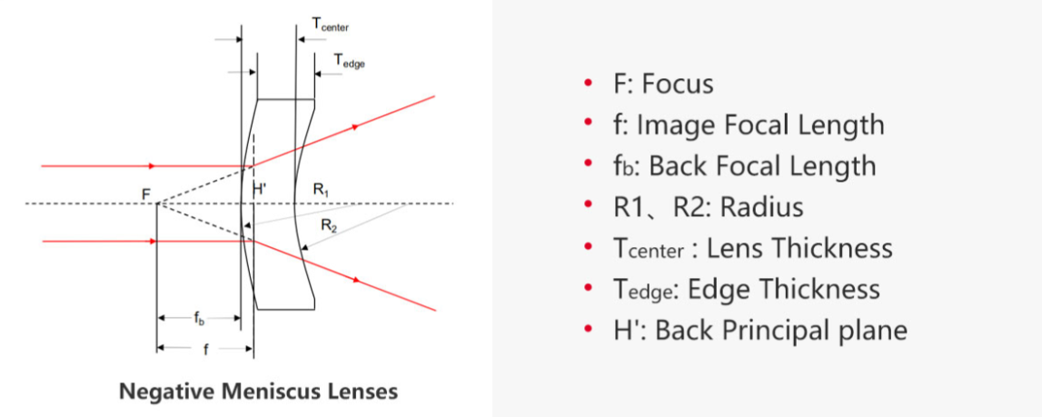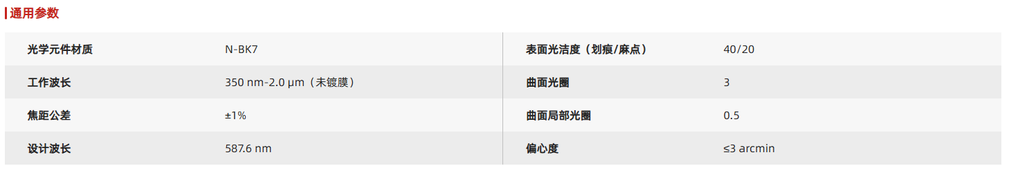 负弯月透镜主要是用于最小化球差。与另外一款透镜结合使用时,正弯月透镜可以增加焦距,在不引入明显球面像差的情况的同时减小系统数值孔径(NA)。当用于会聚平行光时,为了使球差最小化透镜的凸面应朝向光源发射的方向。所有圆形透镜均可安装于标准透镜套筒、固定式透镜镜架以及各类同轴安装板上。客户可针对不同应用场景选择最佳安装方式。