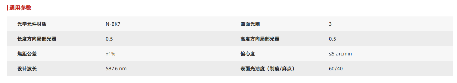 不同于球面透镜,柱透镜只在一个方向上对光束起作用,平凹柱面透镜非常适合用于一维放大应用。典型应用包括双柱透镜组准直和圆化激光二极管输出光束。为了减少球差,平凹柱面透镜用于将准直光束发散成光斑时,光束应入射到透镜曲面上;准直线光源时,光束应入射到透镜平面上。