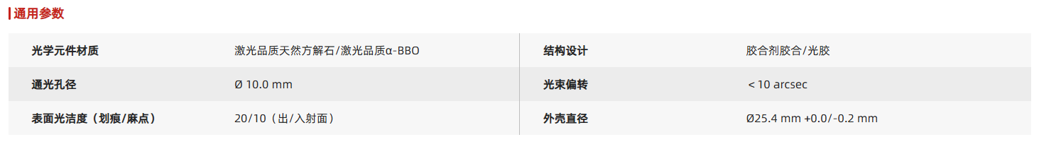 沃拉斯顿晶体偏振棱镜用于输出高消光比的线偏振光,提供通光孔径为Ø10 mm,工作波长为200 nm-1.1 μm(带UV保护膜)、350 nm-2.3 μm(未镀膜)的沃拉斯顿晶体偏振棱镜。