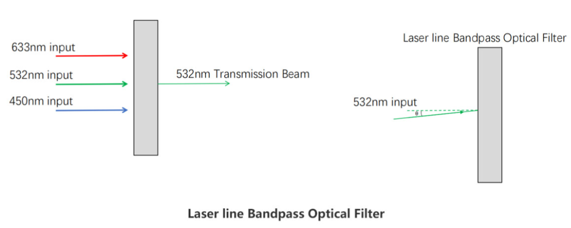 滤光片预安装在黑色阳极氧化铝环中,外壳用箭头标刻了入射方向,方便安装使用。为了避免镀有截止材料的基片受到带通波长外辐射引起热效应降低滤光片特性,建议将镀有截止膜的那一面朝向光源(光沿着箭头方向传播)。滤光片是基于准直光垂直入射设计介质膜厚度,如非准直光或者光没有垂直入射到滤光片表面时,其设计中心波长将向短波长移动,且带通透过率曲线发生变化。所有圆形透镜均可安装于标准透镜套筒、固定式透镜镜架以及各类同轴安装板上。客户可针对不同应用场景选择最佳安装方式。