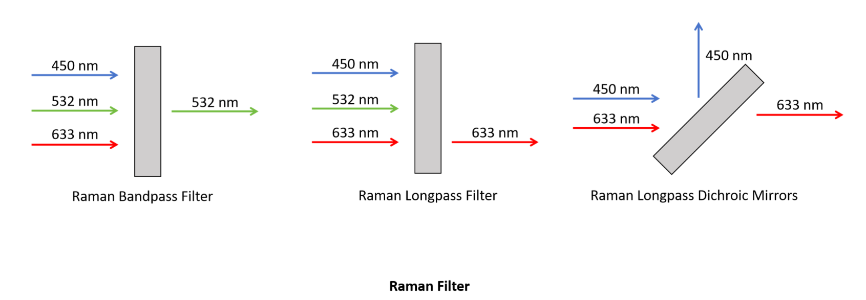 拉曼长波通二向色镜是一种让长波透过、短波反射或吸收的滤光片。它对长于起始(截止)波长的光具有高透过率(Tavg> 90%),而对短于起始(截止)波长的光具有高反射率(Ravg> 90%)。拉曼长波通二向色镜包含带安装(Ø25.0 mm)和未安装(Ø25.0 mm & 36 mm x 25.5 mm )两种。其中,带安装款的外壳上箭头(↑)标刻了光的传播方向,而未安装款侧面用箭头(>)标注了镀膜面方向,方便安装使用。拉曼长波通二向色镜推荐在入射角为45°下使用,当入射角偏离设计角度使用时,起始(截止)波长会发生偏移。