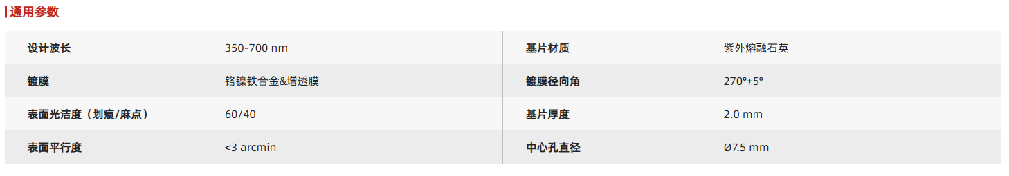 未安装的连续型中性密度滤光片中心孔直径均为7.5 mm,便于机械件的安装,可通过旋转来调整连续型中性密度滤光片的OD值。连续型中性密度滤光片一面镀滤光膜(铬镍铁合金膜),一面镀增透膜(A膜),为保证最佳性能,建议从滤光膜面入射。尽管属于反射型中性密度滤光片,铬镍铁合金膜仍会吸收部分入射光。同时,这种无保护层的金属膜要注意防止接触,清洁时建议使用气吹。