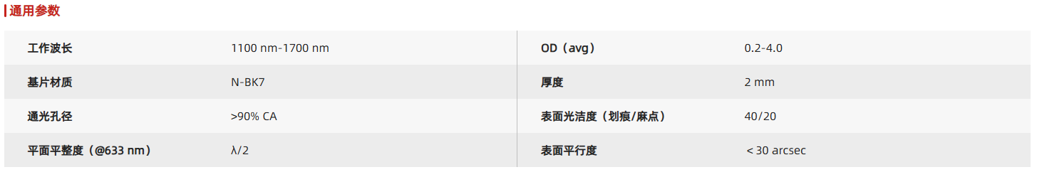反射型中性密度滤光片,工作波长:1100 nm-1700 nm,未安装
